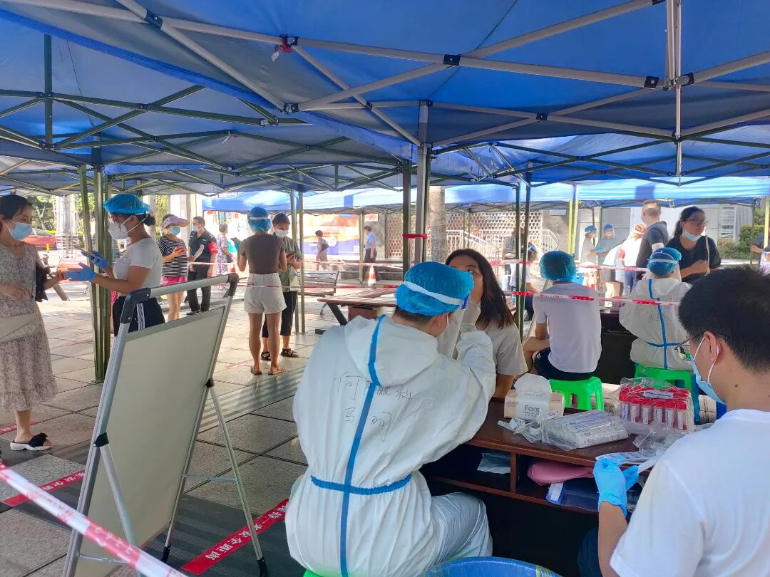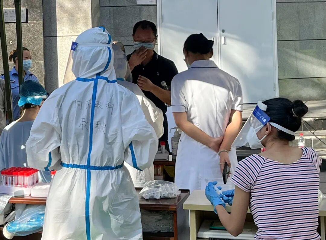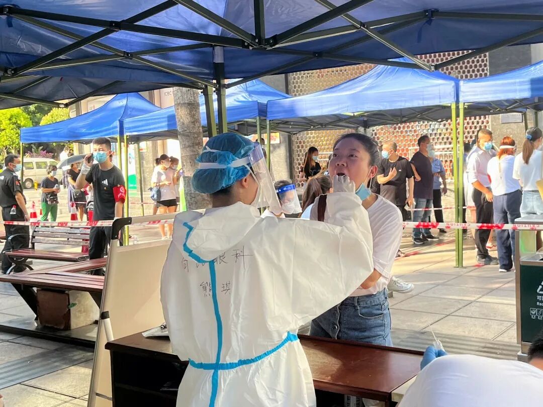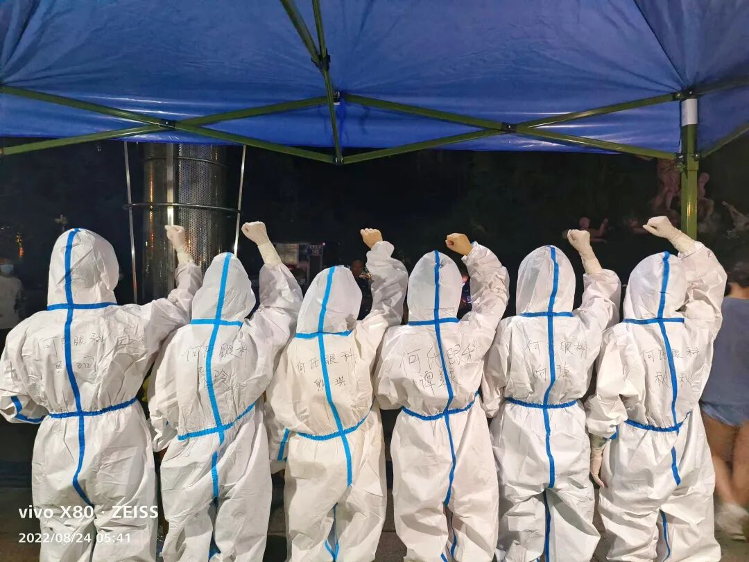 防护服下的衣物早已被汗水浸透,但为了减少市民排队等候时间,为了保质、保量、高效地完成核酸检测任务,大家毫无怨言,用顽强的毅力和一丝不苟的工作态度保持着采样工作效率不减、标准不降,将初心和使命写在疫情防控最前沿。