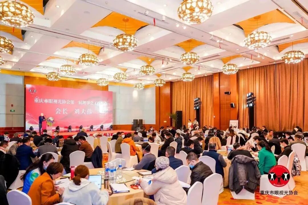 12月28日下午,重庆市眼视光协会换届选举大会暨第二届第一次会员大会在重庆召开。中国眼镜协会副理事长江波,重庆市工商联党组副书记、副主席彭光远,渝中区区委常委、区政府副区长邓光怀,民政局社会组织管理局局长李洋,重庆市商务行业社会组织综合党委专职副书记刘亚菲等领导;四川省眼镜眼镜商会会长杨亦米,内蒙古眼镜协会会长姚金和,江西省眼镜协会会长朱新财、执行会长潘右瑞,新天鸿光学董事长洪作南,蔡司光学全国大客户经理刘希凌等嘉宾以及协会会员单位共约130人出席了会议。